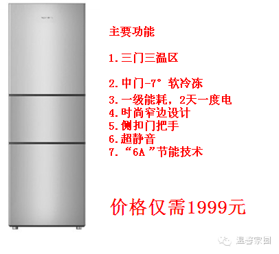 221升三门冰箱工厂价仅需1999元(数量有限,先到先得)