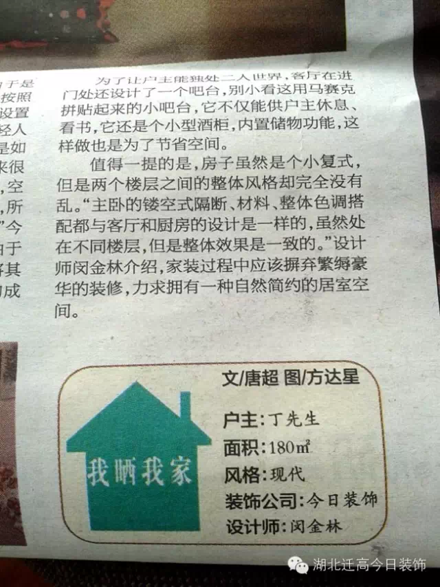 亲爱的们,看了是不是眼前一亮,我们公司每期都会出现在香城都市报上的,我晒我家,咸宁的亲们都有看过,敬请关注我们今日装饰每期专栏哦!